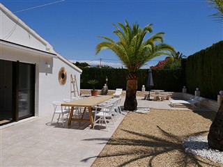 Direct aansluitend aan het gastenverblijf ligt een sfeervol terras met ligbedden, de perfecte plek om ’s ochtends te genieten van een kop koffie in de zon, of later op de dag heerlijk te ontspannen.